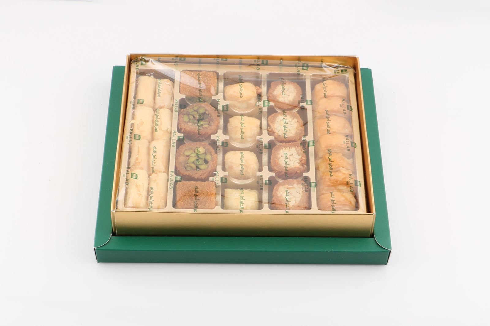 Il y a de baklava végétaliens mélangés et ils comprennent « Noix de cajou Baklava », « Noix de cajou et pistaches Kol W Shkor », « Noix de cajou doigt », « Noix de cajou et pistaches Borma » et « Pistaches Bellawrieh ».