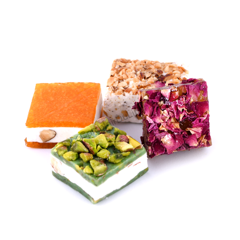 puis garni de pistaches, gomme arabique, pâte d’abricot ou encore de pétales de rose.