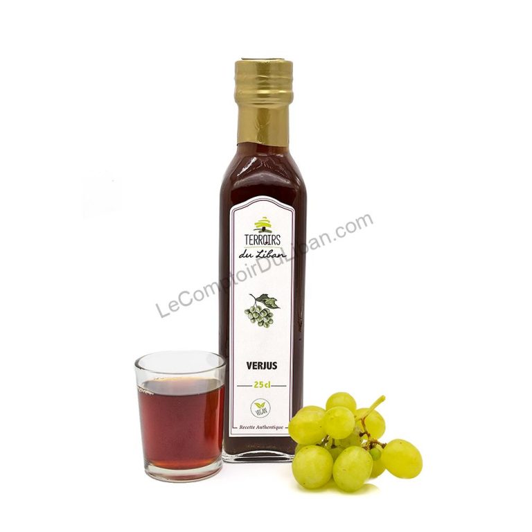Le verjus ou jus de raisin aigre est un aliment de base dans tous les garde-manger libanais et la cuisine du Moyen-Orient,